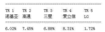 第一階段;湯森路透將每一項專利同歐洲電信標準協(xié)會截至2011年11月18日的LTE規(guī)范進行比較,確定專利的重要性。第二階段涉及先有技術(shù)檢查,即審查在美國和歐洲申請專利過程中的先有技術(shù)參考文獻。湯森路透利用先有技術(shù)參考文獻評估每項專利的新穎性并給出新穎性評級。湯森路透發(fā)現(xiàn),擁有屬于LTE標準范疇的基本與新穎專利的領(lǐng)先廠商有諾基亞、高通、三星、愛立信和LG。結(jié)果如下: