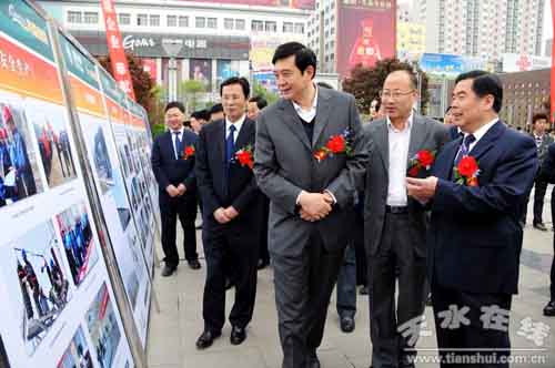 圖:天水市四大組織、市直有關(guān)單位領(lǐng)導(dǎo)及行風(fēng)督察員代表參觀企業(yè)形象宣傳展板