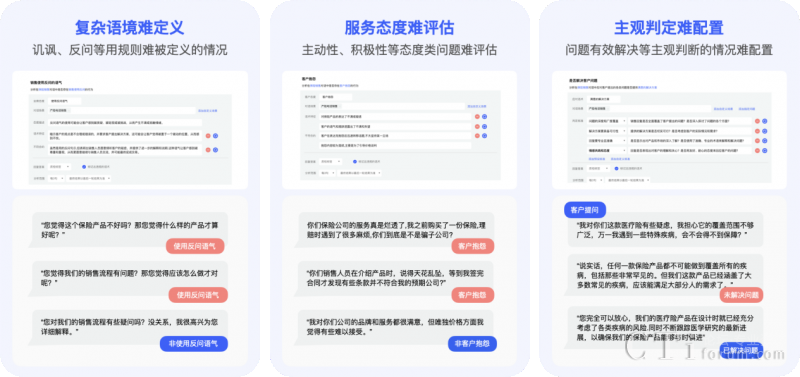 解決了傳統(tǒng)基于關(guān)鍵詞或NLP配置規(guī)則難以窮舉所有違規(guī)內(nèi)容,導(dǎo)致檢測(cè)遺漏的難題,智能質(zhì)檢的配置過程也更為簡(jiǎn)便,只需簡(jiǎn)單的描述輸入即可完成配置,大大降低了操作難度和成本。相較于人工質(zhì)檢,效率提升幅度超過1000倍。