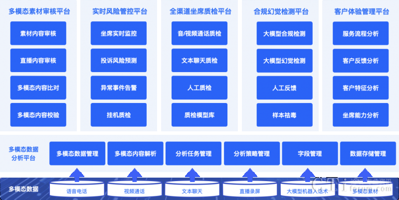 依托多項(xiàng)AI能力融合應(yīng)用,升級(jí)后的【多模態(tài)合規(guī)分析平臺(tái)】能處理對(duì)話數(shù)據(jù)、圖片、音頻和視頻等各種格式的信息,同時(shí)采用大小模型組合式AI合規(guī)檢查機(jī)制,對(duì)各個(gè)渠道的客戶互動(dòng)數(shù)據(jù)進(jìn)行聚合分析,實(shí)現(xiàn)大模型構(gòu)成坐席和客戶間全場(chǎng)景多模態(tài)數(shù)據(jù)檢測(cè)與分析,以及客戶體驗(yàn)升級(jí)。