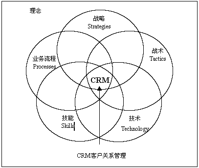 以上各種定義對“客戶關(guān)系”的概念理解是明確、一致的,即“客戶關(guān)系”是客戶與企業(yè)發(fā)生的所有關(guān)系的綜合,是公司與客戶之間建立的一種相互有益的關(guān)系。綜合所有CRM的定義,我們可以將其理解為理念、戰(zhàn)略、技術(shù)三個層面,正確的戰(zhàn)略、策略是CRM實施的指導,信息系統(tǒng)、IT技術(shù)是CRM成功實施的手段和方法。其實,企業(yè)實施CRM主要有6個重要領(lǐng)域:理念、戰(zhàn)略、戰(zhàn)術(shù)、技術(shù)、技能、業(yè)務(wù)過程。其中,理念是CRM成功的關(guān)鍵,它是CRM實施應(yīng)用的基礎(chǔ)和土壤。