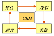 如圖所示,CRM的實(shí)施步驟是診斷-規(guī)劃-實(shí)施-評估的閉環(huán)的過程,保證了"大處著眼、小處入手、迅速見效"。這樣保證了既有長遠(yuǎn)的規(guī)劃和目標(biāo),又能夠步步為營,鞏固實(shí)施成果。