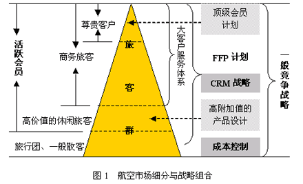 國內(nèi)主要航空公司都進一步明確了市場細分與戰(zhàn)略組合的關系,凸現(xiàn)“以客戶為中心”的經(jīng)營理念,如圖1所示。