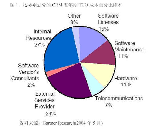 直到2008 年,那些只完成了一兩年期限CRM TCO 模型的企業(yè)將會把其CRM 方案的成本費低估35%-65%(80%的可能性)。直到2008 年,那些沒有采取一項整體方法來確定CRM TCO 的企業(yè)將會使其CRM 預(yù)算超支35%-65%(80%的可能性)。直到2006 年,那些創(chuàng)建了一個準(zhǔn)確的TCO 模型用來引導(dǎo)CRM 項目決策的項目主管將會把其成功的機(jī)會提高30%(80%的可能性)。我們最近對251 家企業(yè)的CRM 行動進(jìn)行了復(fù)審,其結(jié)果顯示其中有71%的企業(yè)聲稱已完成了TCO 評估,有60%的企業(yè)只計算了一兩年的TCO。大多數(shù)企業(yè)都沒有說明其CRM 行動中的所有成本,因此它們就面臨著預(yù)算過低這種風(fēng)險。