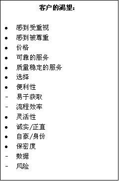 First Direct的一位高級執(zhí)行官在銀行成立伊始曾說過:“客戶體驗(yàn)中的情感成分對于First Direct來說必不可少。其它的東西,身體體驗(yàn),客戶無論從哪個銀行都一樣可能得到。而情感因素將促成First Direct未來十年內(nèi)的成功。對于一位客戶而言,在他放下電話或者停止點(diǎn)擊互聯(lián)網(wǎng)之后他不僅知道自己的需求已經(jīng)在處理之中,而且也知道自己已不必去另外的地方,客戶喜歡這種感覺!(3)