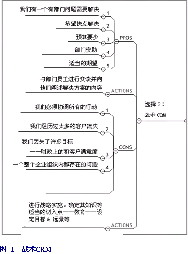 換言之,它是一種戰(zhàn)術(shù)性的還是戰(zhàn)略性的需求?許多企業(yè)喜歡在一段時間內(nèi)解決某個問題或困難。然而這種戰(zhàn)術(shù)性的方式很難為企業(yè)帶來競爭上的優(yōu)勢,盡管它有可能會改善部門的效率。究竟我們要在CRM之路上走多遠?想要知道答案的話可以看一下圖1。從頭開始,問問自己:它是一個具有明確定義和目標范圍的部門需求嗎?如果真是這樣,那么預(yù)算也應(yīng)該相當有限,因為其它業(yè)務(wù)部門決不會遷就。然而你很可能會發(fā)現(xiàn)你的部門問題就是企業(yè)與客戶及市場脫離的征兆。如果情況的確如此,那么你就要好好地努力深化CRM并取得更為廣泛的支持——尤其是CEO,因為你有許多關(guān)于客戶選擇的問題要有賴于他。
