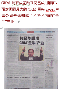 而此前Siebel在中國市場(chǎng)一直采取"大鯨不游淺水"策略,保持低調(diào),冷眼旁觀,并未投入大量人力財(cái)力在中國市場(chǎng),此次巨資籠絡(luò)何經(jīng)華,是否Siebel認(rèn)為中國CRM這個(gè)"淺池子"開始加深了?