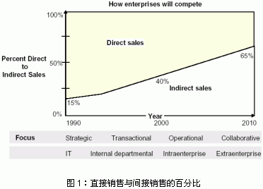 目前,在越來(lái)越多的行業(yè)銷售額的大部分是通過(guò)間接渠道取得的。例如,在高科技、生活消費(fèi)品和離散制造行業(yè),間接銷售合作伙伴帶來(lái)了的收入占總收入的70%以上