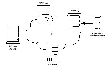 用戶終端程序往往需要包括用戶代理客戶機和用戶代理服務器。代理服務器、重定向服務器 和注冊服務器可以看作是公眾性的網(wǎng)絡服務器。在SIP中還經常提到"定位服務器"的概念,但是定位服務器不屬于SIP服務器。SIP服務器請求定位服務的方式也不在SIP的討論范圍之內。其在IP網(wǎng)絡中的實現(xiàn)如下所示。
