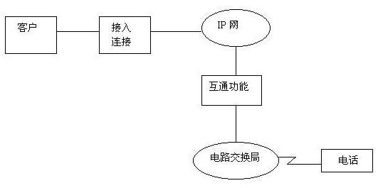 第三階段的重點(diǎn)是電路交換網(wǎng)通過IP網(wǎng)至電路交換網(wǎng),即實現(xiàn)以Internet作為傳送手段進(jìn)行通信的目的,其示意圖如圖所示。