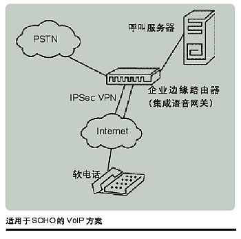。。SOHO用戶的終端設備可以是IP電話或桌面臺式機上的IP電話軟件(Soft Phone)。