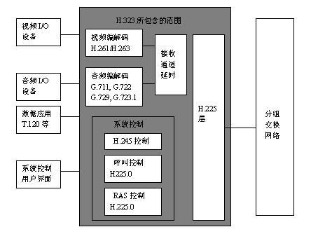 H.323是國際電信聯(lián)盟(ITU)的一個標(biāo)準(zhǔn)協(xié)議棧,該協(xié)議棧是一個有機的整體,根據(jù)功能可以將其分為四類協(xié)議,也就是說該協(xié)議從系統(tǒng)的總體框架(H.323)、視頻編解碼(H.263)、音頻編解碼(H.723.1)、系統(tǒng)控制(H.245)、數(shù)據(jù)流的復(fù)用(H.225)等各方面作了比較祥細(xì)的規(guī)定。