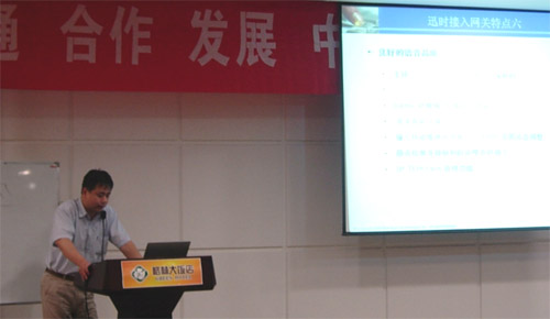 會上中寬網(wǎng)信余輝先生、王凱剛先生和李榮娟女士分別以“NGN軟交換業(yè)務(wù)發(fā)展趨勢和創(chuàng)業(yè)機(jī)會”、“中寬網(wǎng)信企業(yè)級解決方案”、“代理商與終端用戶系統(tǒng)平臺操作與使用”為題發(fā)表了演講,從各方面展示了中寬網(wǎng)信的優(yōu)勢和高速發(fā)展趨勢,同時上海迅時邱洪先生發(fā)表了“迅時通訊——引領(lǐng)技術(shù)未來”、國人陸寧先生發(fā)表了“國人通訊引領(lǐng)無線IP通訊未來”、派瑞符杰先生發(fā)表了“無線VOIP應(yīng)用級解決方案” 得到與會者的積極響應(yīng)。會議現(xiàn)場還展示了全球首款雙模手機(jī)(GSM/WiFi)、可視電話、迅時網(wǎng)關(guān)、國人無線IAD等高端產(chǎn)品,眾多與會者現(xiàn)場體驗了相關(guān)產(chǎn)品的高質(zhì)量通話服務(wù),反響熱烈。