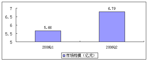2006年國內(nèi)傳統(tǒng)電信運(yùn)營商已經(jīng)逐步開始進(jìn)入到NGN及新一代VoIP業(yè)務(wù)的實質(zhì)性網(wǎng)絡(luò)建設(shè)階段,并且隨著企業(yè)對VoIP理解的加深及控制成本的考慮,大型企業(yè)CIO對VoIP的接納態(tài)度正在向好。在中小型企業(yè)市場,由于企業(yè)對通信成本更加敏感,但受VoIP設(shè)備技術(shù)成熟及價格下降這些因素的影響,這一市場也在迅速升溫。這些都促使VoIP設(shè)備在2006年開始進(jìn)入實際購買階段,促進(jìn)了VoIP設(shè)備規(guī)模增長。2006年第二季度國內(nèi)VoIP設(shè)備市場收入為6.79