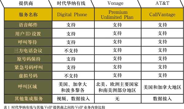 美國市場上的VoIP服務(wù)大多只需用戶支付一定數(shù)量的包月費用,然后就可以無限制地享受北美地區(qū)的電話服務(wù),有線電視運營商的VoIP服務(wù)內(nèi)容也大致如此。使用