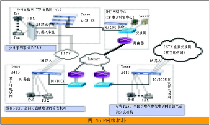 建立起VoIP后,可節(jié)省分行之間對打費用、 分支機構(gòu)所在地的國內(nèi)長途費用以及各點之間互發(fā)傳真的開銷,將來和總行的IP語音網(wǎng)絡(luò)互連時,能形成覆蓋全國的IP電話網(wǎng)絡(luò)。IP語音網(wǎng)絡(luò)除了提供行內(nèi)辦公、業(yè)務(wù)和技術(shù)支持通話以外,也適用于數(shù)據(jù)集中后各種信用卡授權(quán)電話、投訴電話、電話銀行(以及呼叫中心)等用戶電話的接入,客戶和商戶不必?fù)艽蜷L途電話到省中心,而只需撥打到本地的IP語音網(wǎng)關(guān),大大降低運營成本。