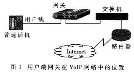 近年來隨著寬帶網(wǎng)絡(luò)和IP技術(shù)的日益發(fā)展,VoIP>(Volee over Internet Protoc01)技術(shù)的應(yīng)用越來越廣泛。網(wǎng)關(guān)是VoIP網(wǎng)絡(luò)中的重要設(shè)備,按照應(yīng)用領(lǐng)域可分為電信級網(wǎng)關(guān)和用戶端網(wǎng)關(guān)。用戶端網(wǎng)關(guān)設(shè)備主要應(yīng)用于小區(qū)和企業(yè),是連接終端電話和IP網(wǎng)絡(luò)的橋梁,主要功能是進行語音編解碼、信令處理、VoIP協(xié)議處理和路由協(xié)議處理等。用戶端網(wǎng)關(guān)設(shè)備在VoIP網(wǎng)絡(luò)中的位置如圖1所示?梢钥闯,網(wǎng)關(guān)處于用戶電話線路部分的末端、IP網(wǎng)絡(luò)部分的起始端。