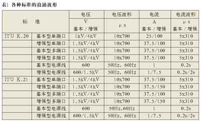 K.20/K.21(國際電信聯(lián)盟)和中國的YD/T993、950標(biāo)準。不同的標(biāo)準要求保護器件、技術(shù)和拓撲具有不同的穩(wěn)定性狀態(tài)。通過比較我們發(fā)現(xiàn),符合美國標(biāo)準的保護器的抵御能力要比符合國際電信聯(lián)盟標(biāo)準的高,更比符合中國標(biāo)準的為高。在大部分情況下,符合美國標(biāo)準的保護解決方案基本上都能通過ITU-T