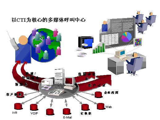 相比之下,以CTI技術為核心的呼叫中心才有可能打破這些局限,成為真正具有開放性、可靠性、靈活性、統(tǒng)一性的多媒體呼叫中心。優(yōu)利公司提供的以CTI技術為核心的呼叫中心,具有統(tǒng)一的CTI核心組件、統(tǒng)一的智能轉接策略、統(tǒng)一的呼叫統(tǒng)計和業(yè)務統(tǒng)計、統(tǒng)一的業(yè)務代表座席應用、統(tǒng)一的管理配置環(huán)境及完善的互聯網服務接口功能模塊,是客戶選擇呼叫中心與互聯網技術相結合的有效方案之一。
