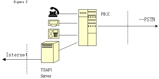 2、TSAPI技術標準:由Novell公司開發(fā)。它將程控交換機或中央電話系統(tǒng)與Netware網(wǎng)絡集成在一起。可以實現(xiàn)呼叫轉(zhuǎn)移,交互式語音(IVR)和自動呼叫分配(ACD)等功能。支持包括Windows各種版本、OS/2和Unix等目前主要操作系統(tǒng)。不同于TAPI ,TSAPI在計算機和桌面之間建立一個邏輯的連接,通過這些連接在任一端的TSAPI應用就可以完成呼叫控制。由于TSAPI主要為Netware網(wǎng)操作系統(tǒng)增加電話服務,不在每個電話和PC之間建立直接的連接,而是由一個電話服務器Netware可加載模塊(NLM)、一個電話服務器API(TSAPI)、一個電話服務器庫和一個電話客戶庫組組成在服務器電話系統(tǒng)間建立的連接,因此這個連接也稱為PBX-To-Server連接。電話服務器 NLM是負責 PBX和 Netware服務器間傳送信息的。電話服務器 API是為運行于服務器上的應用提供電話服務器API。三方連接在客戶--服務器組網(wǎng)中比單方連接有更大的靈活性。網(wǎng)上的每個用戶都可迅速地通過現(xiàn)有的LAN基礎結(jié)構(gòu)撥入PBX。對其他服務的接入,如主機或終端仿真、傳真、E-mail等,都可以通過CTI接口獲得,只要這些業(yè)務已經(jīng)存在于網(wǎng)上。結(jié)構(gòu)如圖: