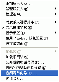 同樣,首先你應(yīng)該在MSN Messenger中調(diào)節(jié)你的音頻和視頻設(shè)備。選擇工具->音頻調(diào)節(jié)向?qū)?圖8)就會彈出“音頻和視頻調(diào)諧向?qū)А钡拇翱?圖9),請根據(jù)這個向?qū)У奶崾,一步一步進(jìn)行測試和調(diào)節(jié)。