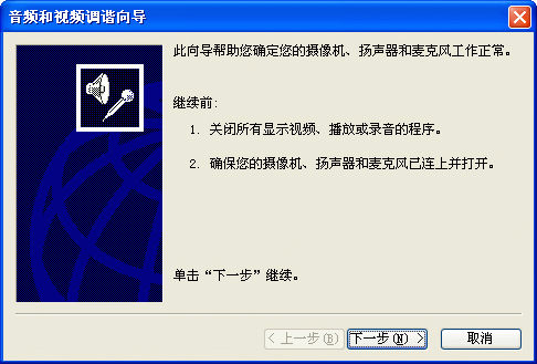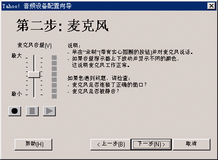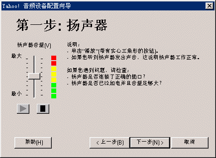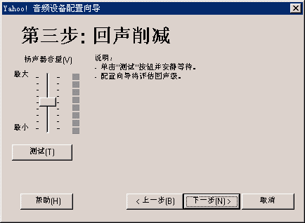 選擇幫助->音頻設(shè)備配置向?qū)?圖2),會彈出“音頻設(shè)備配置向?qū)А贝翱?圖3),這個向?qū)䦷椭銓P聲器、麥克風(fēng)、回音、網(wǎng)絡(luò)連接等項目進(jìn)行標(biāo)準(zhǔn)的測試和設(shè)置。