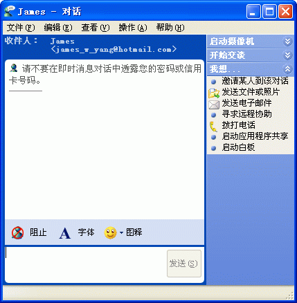 在對你的音、視頻設(shè)備檢查無誤、調(diào)試完畢后,恭喜你!你可以馬上給你的朋友打可視電話了。點擊在線好友的Yahoo! ID,就會彈出一個訊息發(fā)送框(圖6),在菜單欄下面的幾個按鈕中有“視頻”和“語音”兩個按鈕。沒錯!就是它們了,點吧!點擊“視頻”按鈕后彈出了剛才的“我的即時影像”窗口;點擊“語音”按鈕后,訊息發(fā)送框中間部分會多出一條語音顯示和控制的狀態(tài)欄。(見圖7)對方只需右鍵單擊朋友列表中你的Yahoo! ID,并選擇“觀看即時影像”即可看到你的影像并同時聽到你的聲音。OK,開始你們愉快的交流吧。)