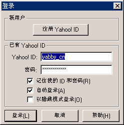 首先,你需要到www.yahoo.com去下載一個雅虎通來安裝,現(xiàn)在最新版本為5.0版。安裝完畢后,請使用你的Yahoo! ID進(jìn)行登錄,如果沒有Yahoo! ID,你需要先注冊一個。