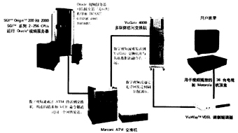 ----這5家公司的解決方案是以電視墻的形式展示的。由36 臺電視機和相應的機頂盒、VDSL調制解調器、裝有Oracle視頻服務器(OVS)的SGI Origin 200服務器以及Marconi的ATM交換機組成。這36臺電視機分別模擬36個終端用戶。實際上,這套系統(tǒng)能帶很多終端用戶,而且對內容傳輸?shù)谋忍芈屎退x擇的網(wǎng)絡協(xié)議都沒有限制。這個解決方案可為服務提供商提供完整的端到端解決方案,它的特點是易于擴展、可有效降低經(jīng)營成本、便于數(shù)據(jù)管理并使用戶得到較高的滿意度。這樣一套完整的解決方案解決了困擾寬帶多媒體應用方案的相互依賴問題,從而使服務提供商可以專心致志地考慮自己的經(jīng)營和收入模式,而不必將寶貴的時間花在開發(fā)使自己的服務發(fā)揮作用所需的各種構件上。這5家公司發(fā)揮了各自的優(yōu)勢,提供了各種構件范疇內所需的專門技術,進而給出了一個比較全面的應用解決方案。這樣一套配合默契的解決方案一定會對寬帶多媒體的進一步普及起到推動作用。