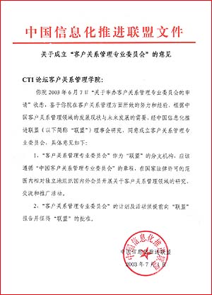 近日,由中國(guó)移動(dòng)、中國(guó)網(wǎng)通、中國(guó)聯(lián)通、海爾集團(tuán)、聯(lián)想集團(tuán)、摩托羅拉、微軟、CTI論壇等20多家單位發(fā)起籌備的"中國(guó)客戶關(guān)系管理專(zhuān)業(yè)委員會(huì)"(以下簡(jiǎn)稱(chēng)專(zhuān)委會(huì)),經(jīng)信息產(chǎn)業(yè)部中國(guó)信息化推進(jìn)聯(lián)盟的批準(zhǔn),正式在京成立。