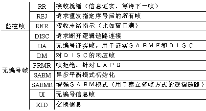 分兩類,一為監(jiān)督幀用于有序幀的證實和流控;一為無編號幀(無需證實)。
