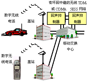 為了確保在一個(gè)本地?zé)o線到無(wú)線呼叫中包含有Studio Sound功能,回聲抑制器必須安裝在兩個(gè)附加位置之一。對(duì)于使用5ESS交換機(jī)的CDMA或TDMA移動(dòng)交換中心,這是通過環(huán)回中繼實(shí)現(xiàn)的,兩個(gè)回聲抑制器背靠背安裝在MSC內(nèi)交換機(jī)的兩個(gè)中繼上。對(duì)于GSM網(wǎng)絡(luò),回聲抑制器可以安裝在A接口上也就是MSC和基站之間的鏈路上,這些配置中的每一個(gè)都允許本地?zé)o線呼叫的兩側(cè)都獲得完整的Studio Sound功能集的好處。