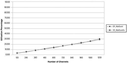 這部分提供了使用正確的線程和通道數(shù)組合的測試結(jié)果, 使用的是擴展異步編程模式sr_waitEvtEx().