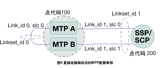 需要使用一條額外的鏈路集來連接兩個MTP3平臺,以使單個點(diǎn)代碼可以在兩個平臺間共享。與標(biāo)準(zhǔn)SS7鏈路集的定義方式相同,使用MTP_LINKSET配置命令,并且 和使用相同的值(均設(shè)置為兩個平臺間共享的平臺點(diǎn)代碼的值)。這個鏈路集需要將參數(shù)的bit