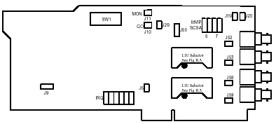 所有配有BNC連接頭的板卡在E1 75歐姆點(diǎn)都有LIU選擇器,用戶不能夠移動(dòng)這些選擇器。