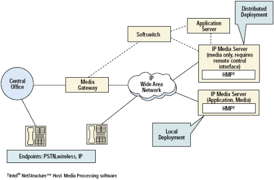 一個IP媒體服務器是在網絡中的終結IP連接的節(jié)點. 根據(jù)客戶環(huán)境的不同(服務提供商或企業(yè)), IP媒體服務器可以用很多方法來實現(xiàn).