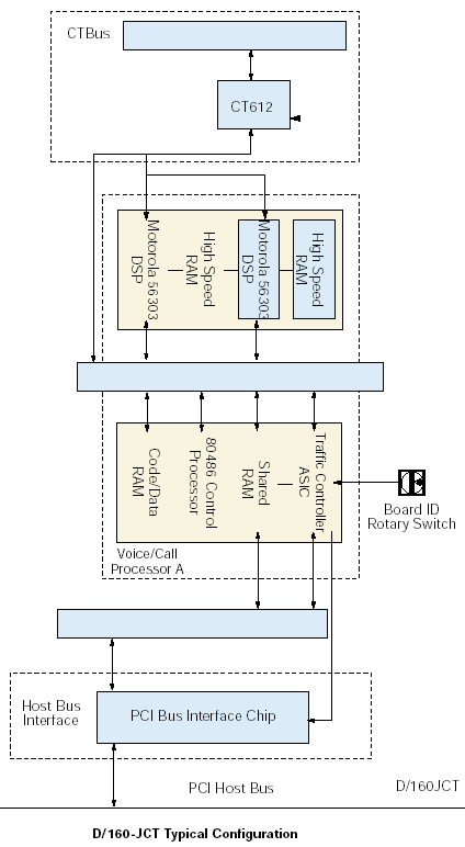 D/320-JCT板卡通過與外部網(wǎng)絡連接的CT總線接口與網(wǎng)絡接口板卡相連。DSP資源通過一個CT612模塊接收數(shù)字語音數(shù)據(jù),CT612作為到CT總線的接口。DSP基于下載到它的高速RAM中的Spring