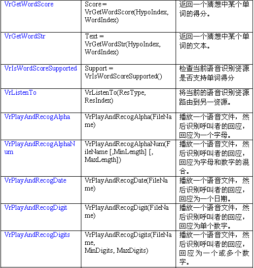 語音識(shí)別資源把呼叫者的語音轉(zhuǎn)變?yōu)槲谋咀址。一個(gè)VR資源可以對(duì)一個(gè)語音流數(shù)據(jù)(來自一中繼或會(huì)議資源)進(jìn)行識(shí)別。