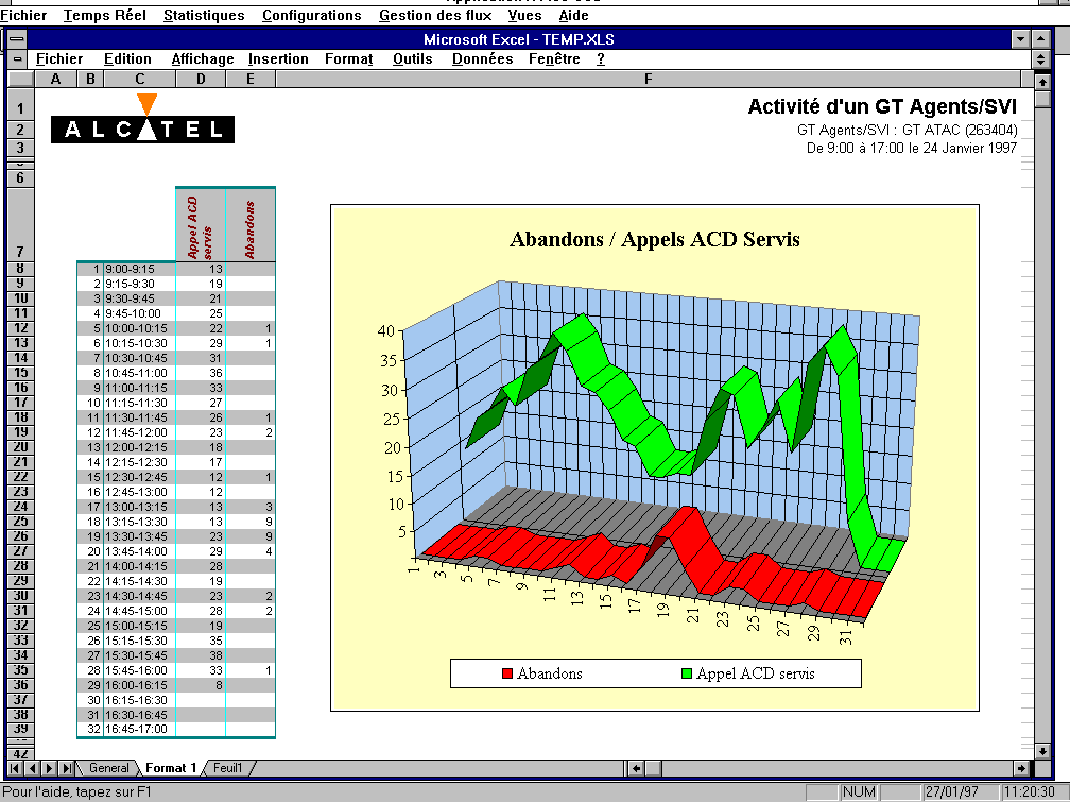 除了實(shí)時統(tǒng)計,A4400 CCS 用"Excel" 以擴(kuò)展式清單和圖表形式提供詳細(xì)統(tǒng)計信息。而且,詳細(xì)的通話呼叫水平清單能下載到您的數(shù)據(jù)庫(以太網(wǎng)TCP/IP 協(xié)議的FTP)根據(jù)用戶的需要可作后期處理。