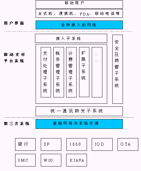 3、 移動(dòng)支付平臺(tái)可以支持多種支付方式,如信用卡、儲(chǔ)值卡、小額支付等;平臺(tái)本身具備一小額儲(chǔ)值卡平臺(tái),用于移動(dòng)業(yè)務(wù)和ICP業(yè)務(wù)支付等;