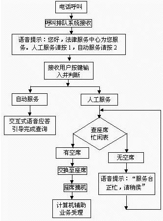 · 外線撥入系統(tǒng)后,如果選擇人工服務,系統(tǒng)將來話與臺內(nèi)座席接通。值班人員詢問用戶需求,通過座席電腦查詢相應法律條文,向用戶提供相關的法律服務。