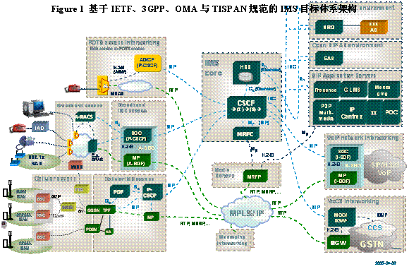 主要從固定網(wǎng)的角度研究以IMS為核心控制系統(tǒng)的FMC目標(biāo)網(wǎng)絡(luò)架構(gòu),制定了基于IMS的NGN/FMC相關(guān)規(guī)范,在3GPP與TISPAN的聯(lián)合工作下,TISPAN的IMS取得了不小的進展。OMA采用IMS開發(fā)業(yè)務(wù)引擎,并制定端到端業(yè)務(wù)引擎的規(guī)范