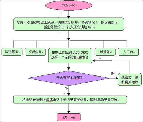 電話受理流程中的每一項業(yè)務均可以實現(xiàn)自動式語音應答,自動索取傳真資料,人工服務等功能,其中,投訴業(yè)務既可以實現(xiàn)人工受理,也能夠完成系統(tǒng)自動受理。