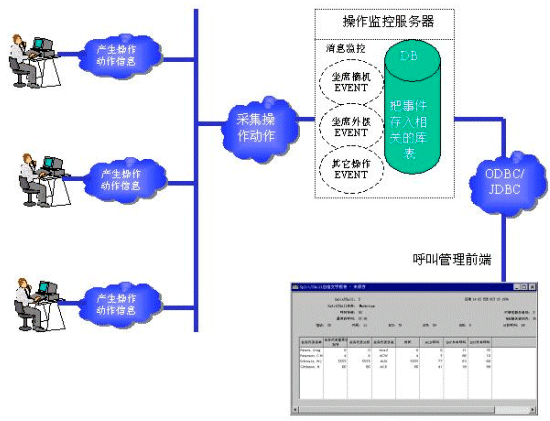 這種方案的主要優(yōu)點是信息非常快速和準確,由于消息來源只和坐席的操作動作有關,并且中間沒有其它中轉(zhuǎn)系統(tǒng),所以不會出現(xiàn)坐席已經(jīng)掛機2秒后,管理系統(tǒng)還顯示坐席通話的情況。