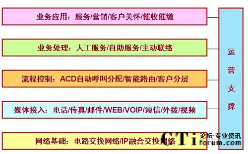 多媒體接入方式,應對以混合業(yè)務處理的高效座席處理,才是現(xiàn)代化、高效率的聯(lián)絡中心業(yè)務模式。而聯(lián)絡中心后臺的業(yè)務處理卻是統(tǒng)一的,其構架層次分明,如下圖示: