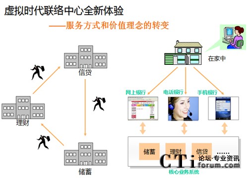所以,英立訊提出的 “感•動中心”實際代表了未來聯(lián)絡(luò)中心的發(fā)展方向,那就是:聯(lián)絡(luò)中心的全媒體溝通方式代表了新一代“人機(jī)交互”的通訊模式,將逐步替代“人人交互”的傳統(tǒng)柜員模式。以金融行業(yè)為例,融合電話銀行和網(wǎng)上銀行的電子銀行業(yè)務(wù),正在替代越來越多的柜臺業(yè)務(wù),80%以上的柜臺業(yè)務(wù)通過電話或網(wǎng)絡(luò)都能辦妥,同時銀行可以通過電話外呼方式進(jìn)行產(chǎn)品銷售的規(guī)模連年成倍增長,電話渠道服務(wù)正成為商業(yè)銀行業(yè)績上升的新增長點。