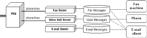 現(xiàn)在,幾乎是所有的企業(yè)都按照媒體的不同,用語音郵件系統(tǒng)處理語音消息、用傳真服務(wù)器處理把傳真,服務(wù)器是唯一的管理方法,這在大多數(shù)人看來似乎是理所當(dāng)然的。