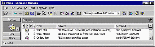 各種形態(tài)的大量的消息不斷涌來,僅僅是對這么大量的電子郵件、語音郵件、傳真、其它消息等進(jìn)行檢查和存取就已經(jīng)很令人厭煩了,理想的做法是能在一個(gè)地方對所有的消息做出檢查。在僅有紙張的時(shí)代,這一個(gè)地點(diǎn)只能是辦公桌上的信箱,而現(xiàn)在,對應(yīng)的則是PC機(jī)中的電子“收信箱”。