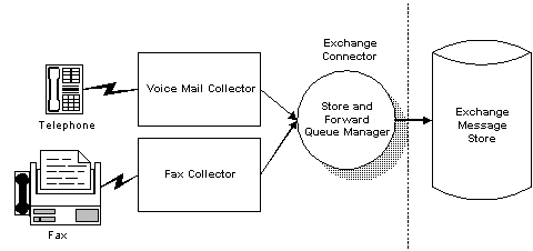在這個(gè)結(jié)構(gòu)中,語音郵件消息和收到的傳真,都直接保存在Exchange的消息數(shù)據(jù)庫中,如果Exchange服務(wù)器停機(jī),語音郵件和傳真都會(huì)永久丟失。