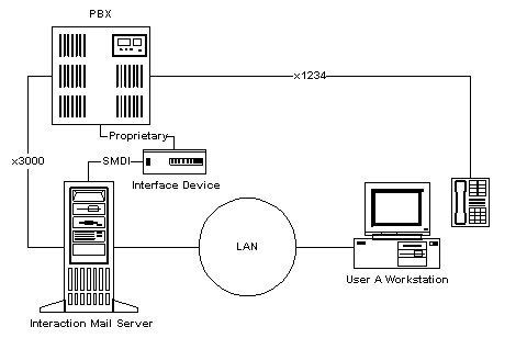 Interaction Mail可以與主流PBX和Centrex集成,因此可以提供傳統(tǒng)的單一目的的語音郵件系統(tǒng)的所具有的全部功能以及其它很多功能。這是通過使用簡易型消息桌面接口(SMDI)協(xié)議來執(zhí)行的。SMDI接口本來是為了語音郵件系統(tǒng)和Centrex的集成而開發(fā)的,可以應(yīng)用于Lucent、Nortel、Siemens、NEC、Mitel、Ericsson等PBX。